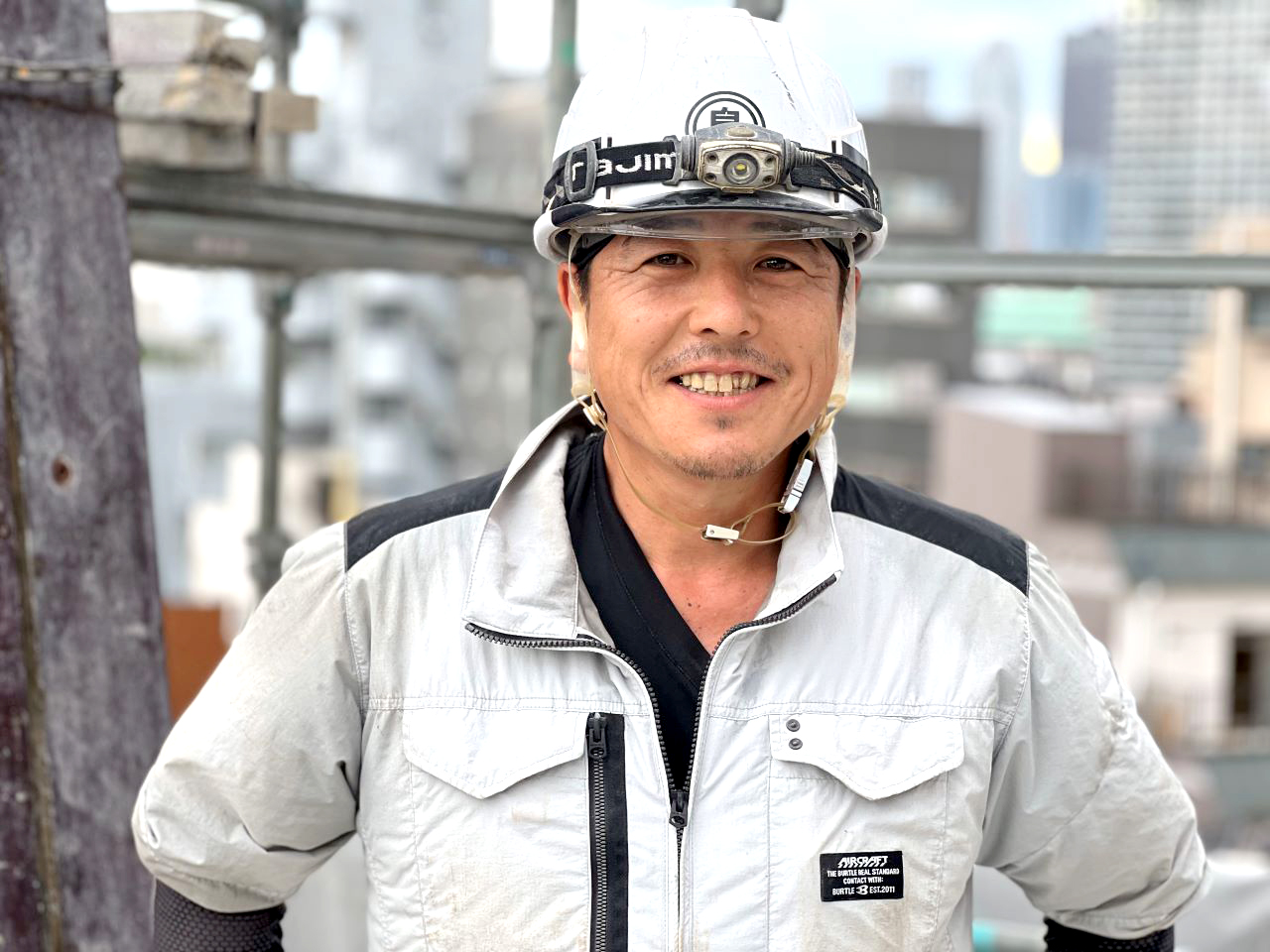 とにかく型枠解体の仕事が大好きです。道具やユニフォームを身に付けるとやる気がみなぎります!毎日が楽しいです。